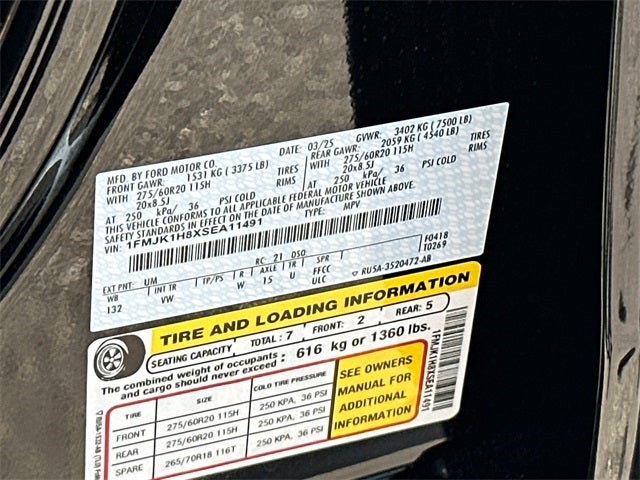 3.31 Axle Ratio, 6 Speakers, ABS brakes, Adaptive Cruise Control w/Stop-and-Go, Apple CarPlay/Android Auto, Cloth Front Captain's Chairs, Compass, Electronic Stability Control, Front Dual Zone Electronic A/C, Low Tire Pressure Warning, Navigation System, Powerfold 3rd Row Seats, Remote Keyless Entry, SiriusXM w/360L, Traction control, Wheels: 20 Carbonized Gray Bright Machined Aluminum.
