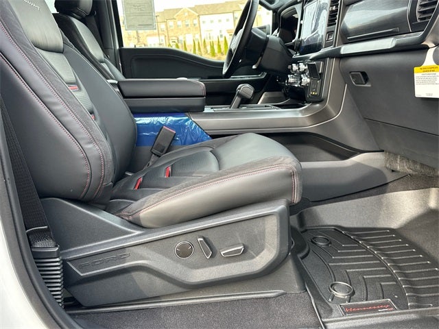 EQUIPMENT GROUP, 4WD, 2nd Row Heated Seats, 4 Pickup Box Tie-Down Plates, 6 Extended Running Boards, 8 Speakers, AM/FM radio: SiriusXM with 360L, Ambient Lighting - Ice Blue Color Only, Automatic temperature control, Bed Utility Package, Black Exterior Badging, Black Grille, Black Taillamp Bezels, Body-Color Front & Rear Bumpers, Body-Color Skull Caps & Door Handles, Console Worksurface, Dark Interior Appliques, Electronic Locking w/3.73 Axle Ratio, Equipment Group 502A High, Front Dual Zone Electronic A/C, Fully automatic headlights, Garage door transmitter, Gray Box Side Decal, Heads-Up Display, Heated Steering Wheel, Heated/Cooled Front Seats, Illuminated Driver & Passenger Visors, Integrated Trailer Brake Controller, Lariat Black Appearance Package, LED Box Lighting, Low Tire Pressure Warning, Matte Black Tailgate F-150 Decal, Mobile Office Package, Partitioned Lockable Rear Storage, Power Tailgate, Power-Sliding Rear Window, Pro Access Tailgate, Radio: B&O Unleashed Sound System by Bang & Olufsen, Remote Keyless Entry, Split folding rear seat, SYNC 4 w/Enhanced Voice Recognition, Tough Bed Spray-In Bedliner, Tow/Haul Package, Twin Panel Moonroof, Wheels: 20 Gloss Black Painted Aluminum, Wireless Charging.