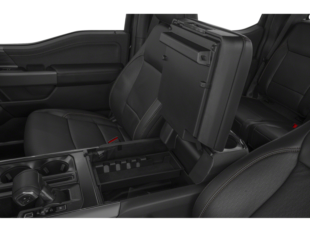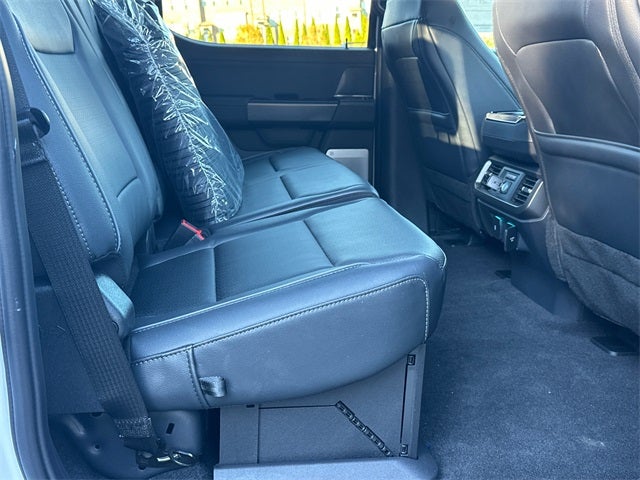 EQUIPMENT GROUP, 3.5L PowerBoost Full-Hybrid V6, 4WD, 2nd Row Heated Seats, 4 Pickup Box Tie-Down Plates, 4x4 FX4 Off-Road Bodyside Decal, 6 Extended Running Boards, 8 Speakers, ActiveX Trimmed Bucket Seats (B), AM/FM radio: SiriusXM with 360L, Ambient Lighting - Ice Blue Color Only, Automatic temperature control, Bed Utility Package, Black Exterior Badging, Black Grille, Black Taillamp Bezels, Body-Color Front & Rear Bumpers, Body-Color Skull Caps & Door Handles, Console Worksurface, Dark Interior Appliques, Electronic Locking w/3.73 Axle Ratio, Equipment Group 502A High, Front Dual Zone Electronic A/C, Fully automatic headlights, FX4 Off-Road Package, Garage door transmitter, Gray Box Side Decal, Heads-Up Display, Heated Steering Wheel, Heated/Cooled Front Seats, Hill Descent Control, Illuminated Driver & Passenger Visors, Integrated Trailer Brake Controller, Lariat Black Appearance Package, LED Box Lighting, Low Tire Pressure Warning, Matte Black Tailgate F-150 Decal, Mobile Office Package, Monotube Rear Shocks, Off-Road Tuned Front Shock Absorbers, Partitioned Lockable Rear Storage, Power Tailgate, Power-Sliding Rear Window, Pro Access Tailgate, Pro Power Onboard - 7.2KW, Radio: B&O Unleashed Sound System by Bang & Olufsen, Rock Crawl Mode, Split folding rear seat, SYNC 4 w/Enhanced Voice Recognition, Tow/Haul Package, Tray Style Floor Liner w/o Carpet Mats, Twin Panel Moonroof, Wheels: 20 Gloss Black Painted Aluminum, Wireless Charging.