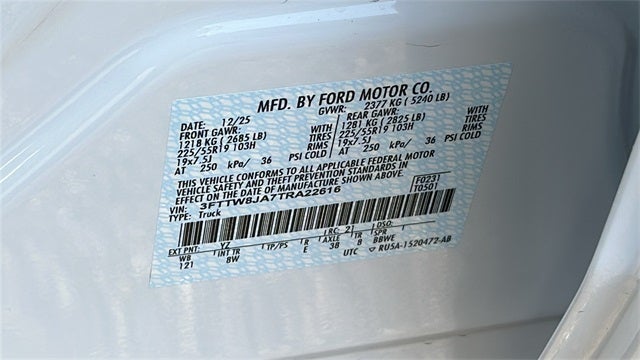 EQUIPMENT GROUP, 2.91 Axle Ratio, 4K Tow Package, Apple CarPlay/Android Auto, Auto High Beams, Automatic temperature control, Black Appearance Package, Black Grille, Black Interior Accents, Black Painted Mirrors, BLIS with Cross-Traffic Alert and Trailer Coverage, Equipment Group 302A, Exit Warning, Exterior Parking Camera Rear, Ford Co-Pilot360, Ford Connectivity Package (1-Year Included), Fully automatic headlights, Internet access capable: 5G Modem - Ford Connectivity Package, Intersection Assist, Lane-Keeping System, Low Tire Pressure Warning, Power Glass Manual-Folding Mirrors, Pre-Collision Assist with Automatic Emergency Braking, Radio: AM/FM Stereo with 6 Speakers, Rear Cross Traffic Braking, Rear Parking Sensors, Rear-View Camera, SiriusXM with 360L, SYNC 4 with Enhanced Voice Recognition, Trailer Brake Controller, Trailer Hitch (class III) 2 Receiver, Unique Cloth Front Bucket Seats, Unique Cloth Front Bucket Seats with Black Appearance, Upgraded Cooling Fan, Wheels: 19 Black Painted Aluminum.