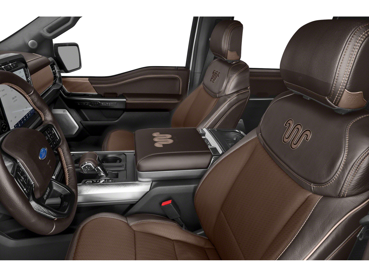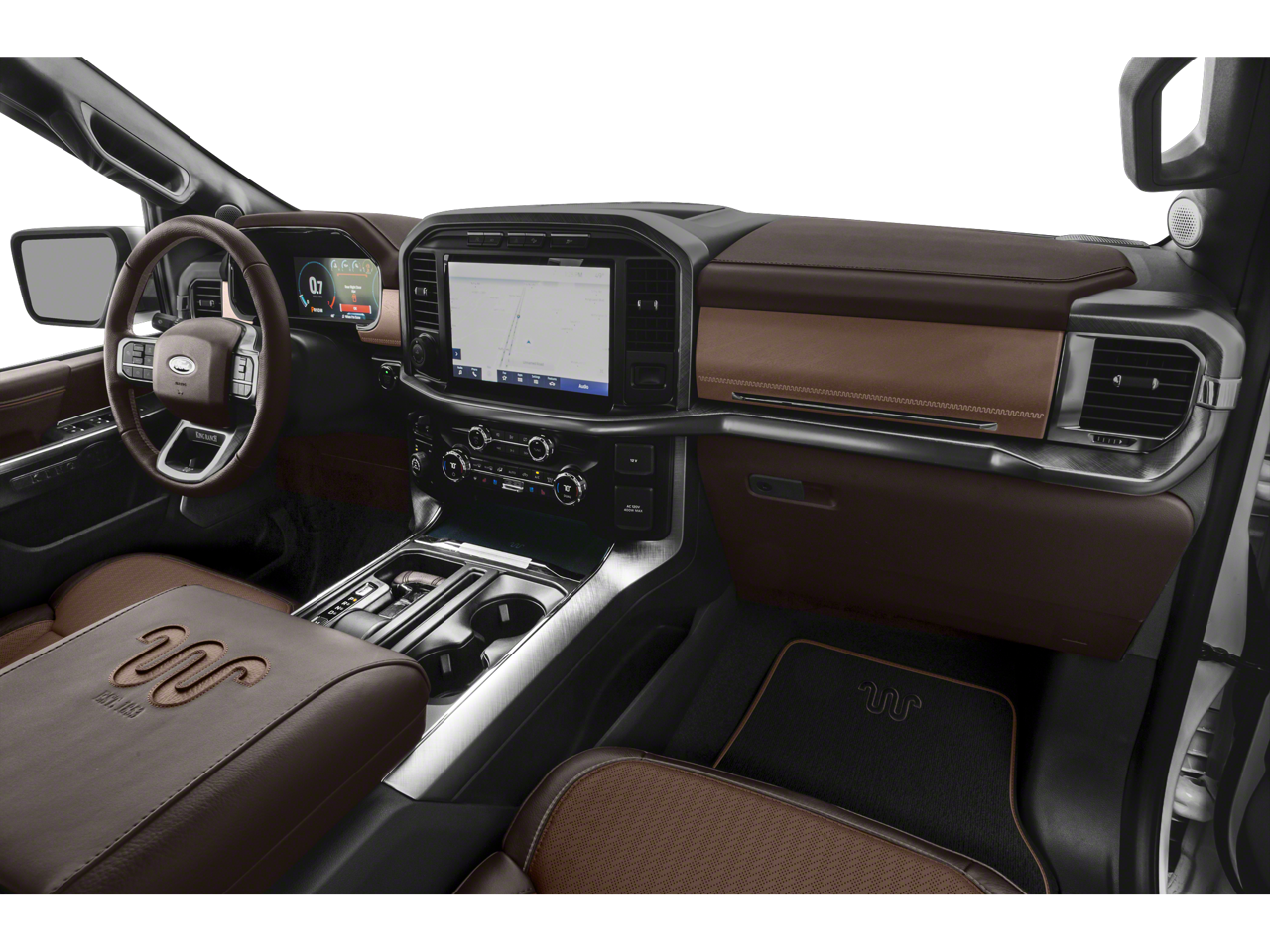 EQUIPMENT GROUP, 3.5L PowerBoost Full-Hybrid V6, 4WD, 4x4 FX4 Off-Road Bodyside Decal, 8 Speakers, Active Park Assist 2.0, AM/FM radio: SiriusXM with 360L, Automatic temperature control, Bed Utility Package, BlueCruise, BoxLink, Bright Belt Moldings, Chrome Door Handles w/Body-Color Strap, Chrome Skull Caps on Exterior Mirrors, Class IV Trailer Hitch Receiver, Electronic Locking w/3.73 Axle Ratio, Equipment Group 601A High, Exterior Parking Camera Rear, Ford Co-Pilot360 Active 2.0, Front Dual Zone Electronic A/C, Fully automatic headlights, FX4 Off-Road Package, Garage door transmitter, Genuine wood console insert, Heated/Cooled Front Seats, Hill Descent Control, Integrated Trailer Brake Controller, King Ranch Chrome Appearance Package, King Ranch Leather Bucket Seats, LED Box Lighting, Low Tire Pressure Warning, Monotube Rear Shocks, Multi-Contour Leather Driver & Passenger Seats, Off-Road Tuned Front Shock Absorbers, Power Tailgate, Power-Deployable Running Boards, Pro Power Onboard - 7.2KW, Pro Trailer Backup Assist, Radio: B&O Unleashed Sound System by Bang & Olufsen, Remote Keyless Entry, Rock Crawl Mode, Second Row Bucket Heated Seats, Split folding rear seat, SYNC 4 w/Enhanced Voice Recognition, Tailgate Step w/Tailgate Work Surface, Trailer Tow Package, Tray Style Floor Liner, Twin Panel Moonroof, Wheels: 20 Chrome-Like PVD.